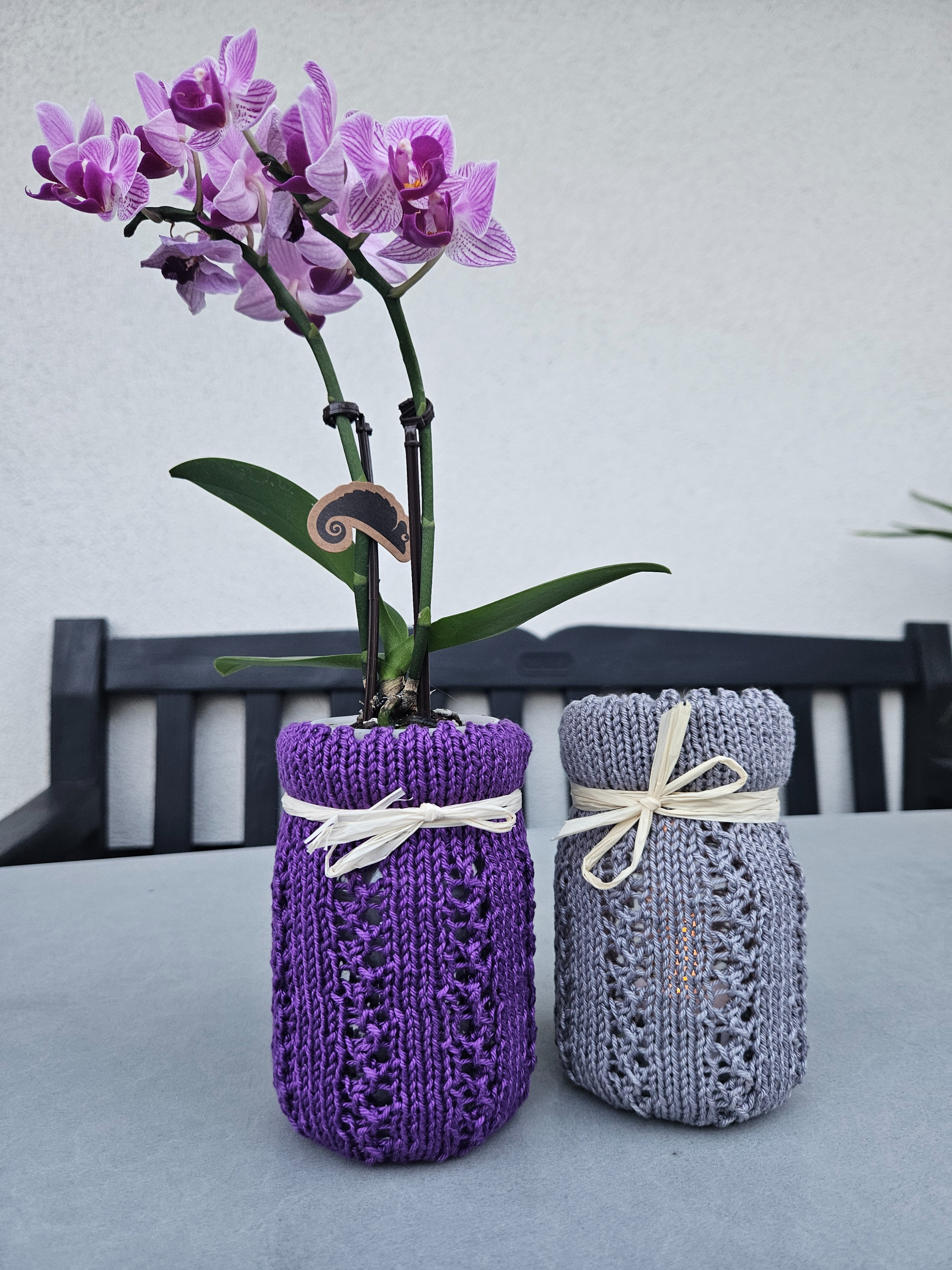 Bei diesem schnellen Strickprojekt "Vase oder Windlicht" könnt ihr Wollreste verarbeiten und gleichzeitig eure Terrasse oder Garten schmücken. Beim Stricken mit dem angenehmen Baumwollgarn kommt ihr auch bestimmt nicht ins Schwitzen.